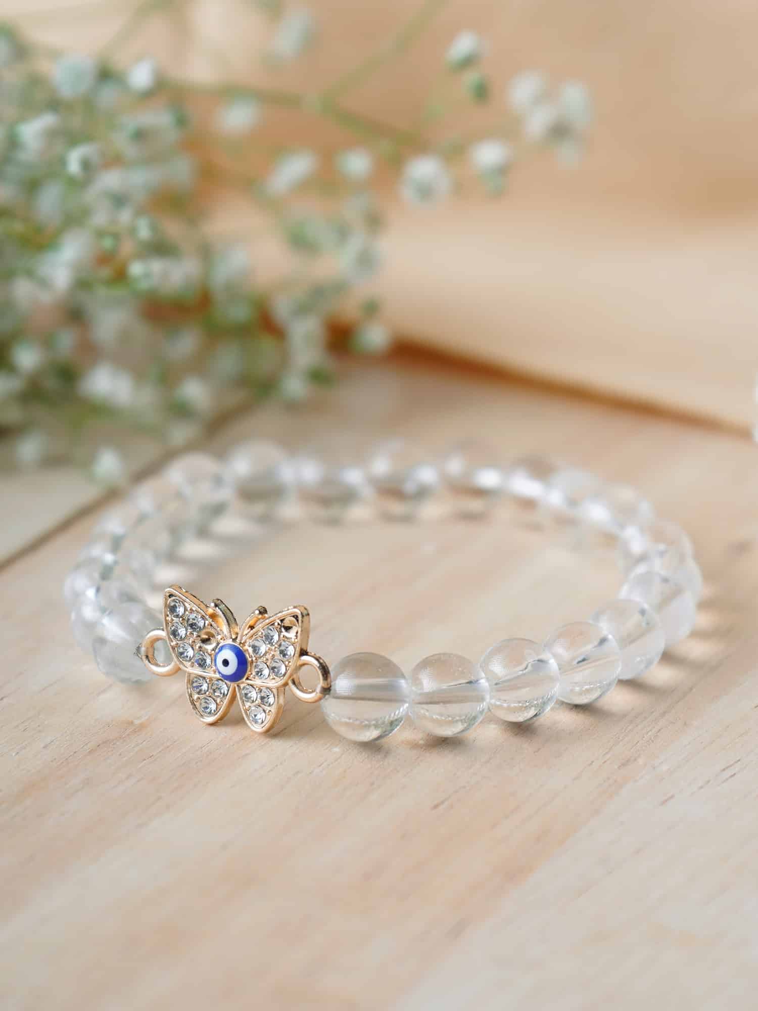 Be the first to review “Clear Quartz Bracelet Evil Eye (Butterfly) 8MM” Cancel reply