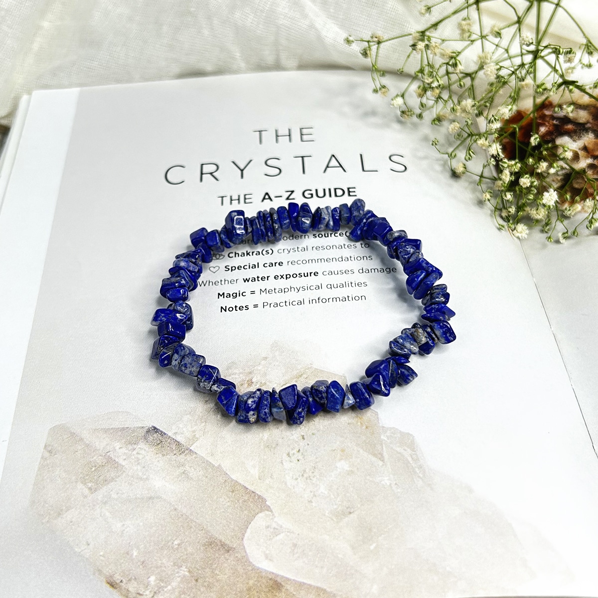 The Lapis Lazuli Chips Bracelet sparkles with ancient wisdom and celestial energy. Each chip carries the deep royal blue of the night sky sprinkled with golden pyrite stars.A perfect companion for confidence, intuition, and speaking your truth boldly and beautifully.