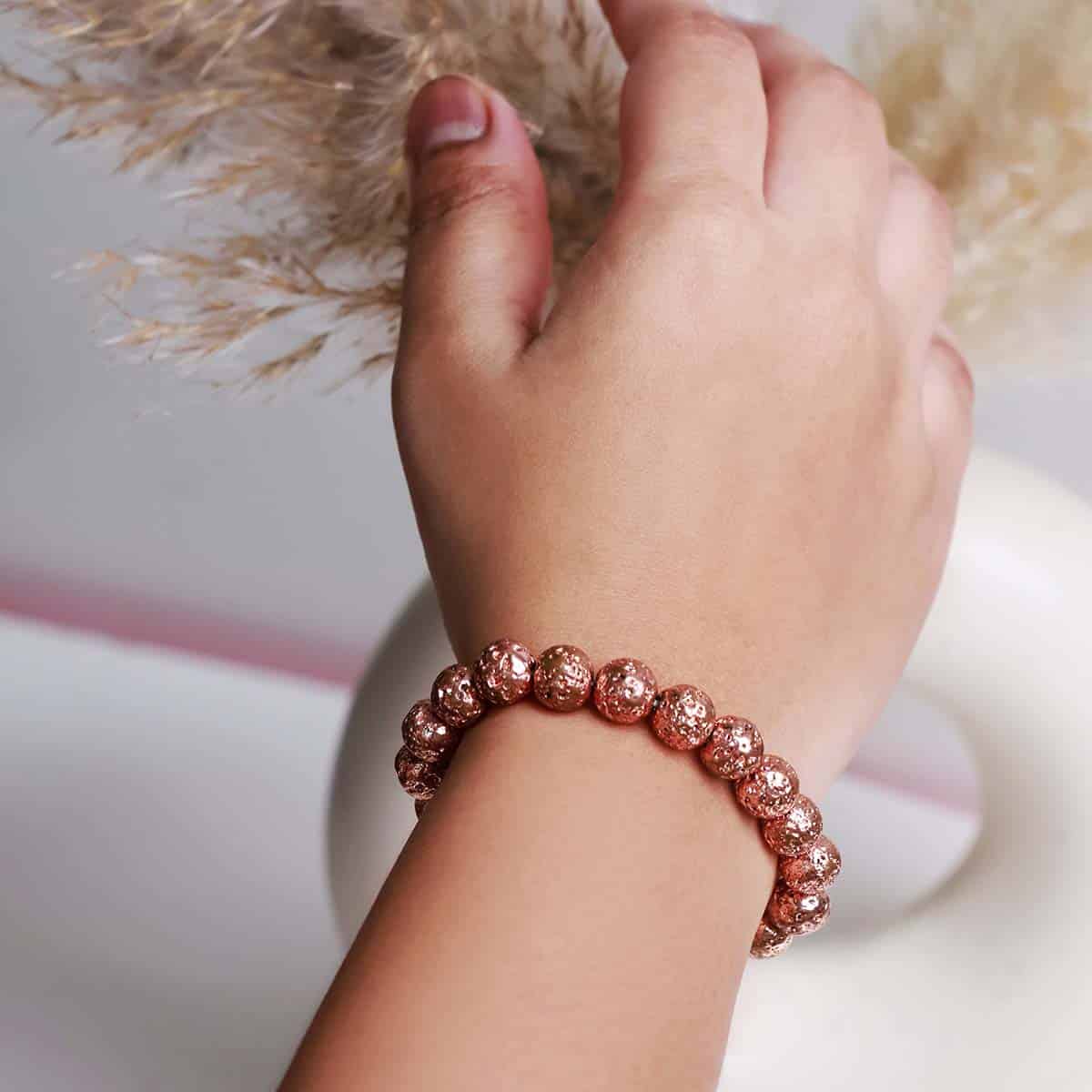 Lava Rose Metallic Natural Stone Bracelet for Women, Crystal Beads Bracelet for Men, Fashion Crystal Healing Stone Bracelet for Unisex jewellery 23 Beads (Rose Gold, Free Size)