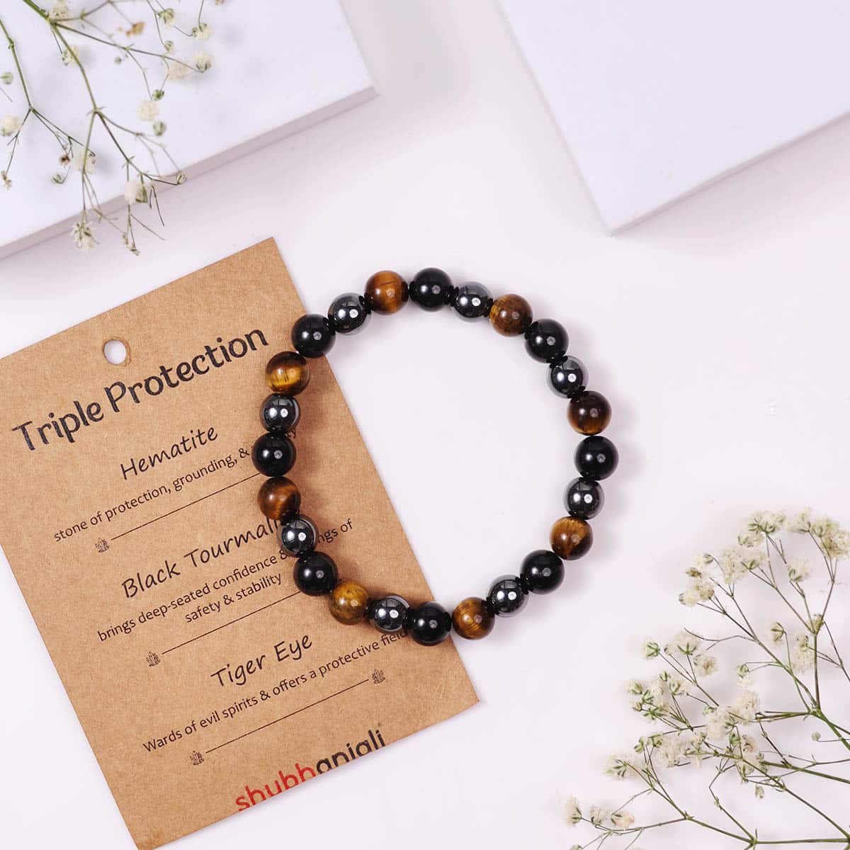 Deflect negativity and stay grounded with the powerful Triple Protection Bracelet from Navgrahh, handcrafted with three of the most protective stones: Hematite, Black Tourmaline, and Tiger Eye. This energy armor helps cleanse your aura, repel negative influences, and boost inner strength.Whether you’re dealing with stressful environments, toxic people, or emotional overwhelm, this bracelet creates a shield of energetic protection, while keeping your mind clear and your spirit empowered. Stylish and spiritual, it’s perfect for daily wear, meditation, or gifting to loved ones who need grounding and strength.