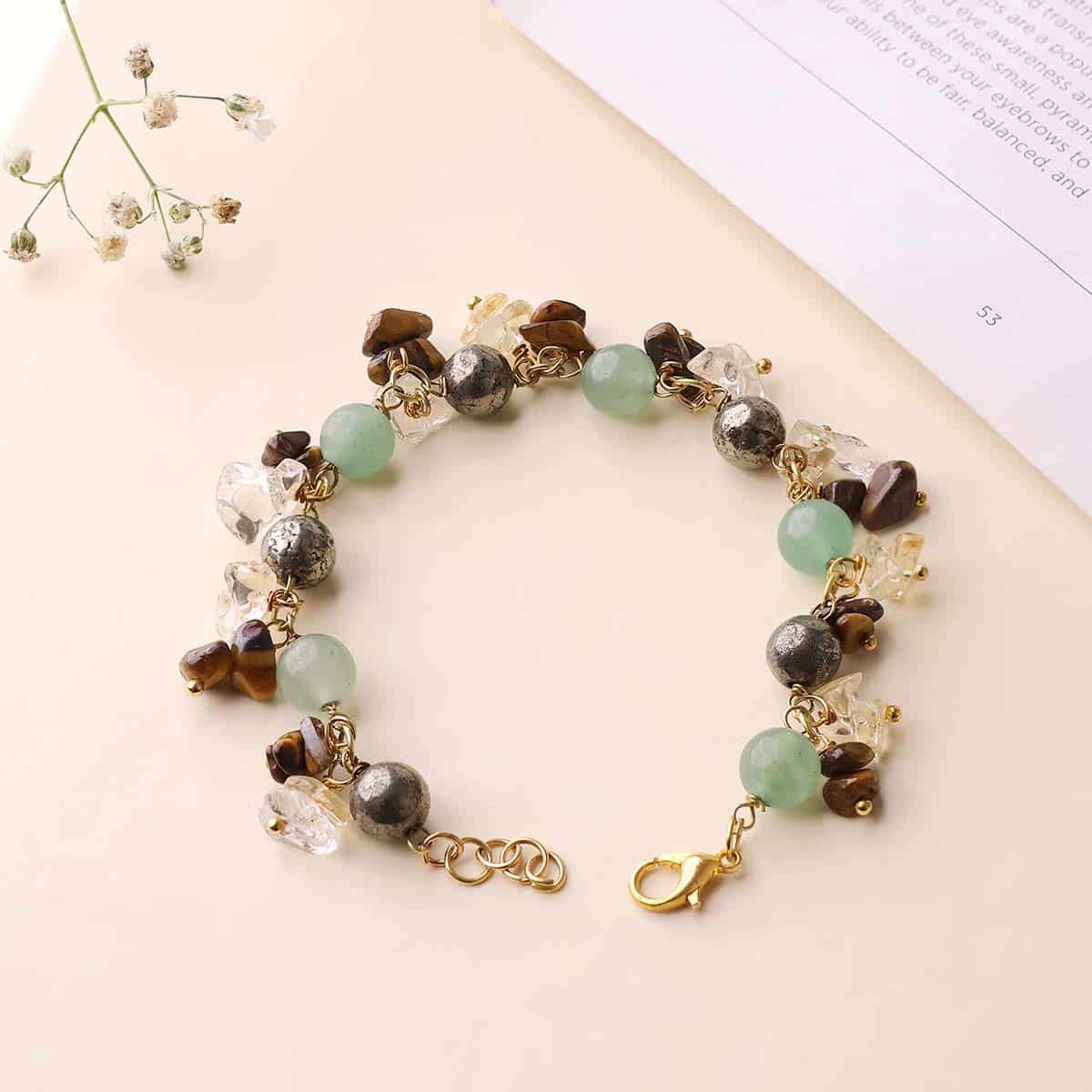 A powerhouse bracelet charged with luck, courage, and money-attracting energy. The Wealth Chips & Beads Bracelet combines four of the strongest prosperity crystals — Pyrite, Citrine, Green Aventurine, and Tiger Eye.Each bead and chip works like a teammate cheering for your financial success, boosting confidence, and guiding you toward smart opportunities.Stylish enough for daily wear, powerful enough to shift your energy into a wealth magnet.